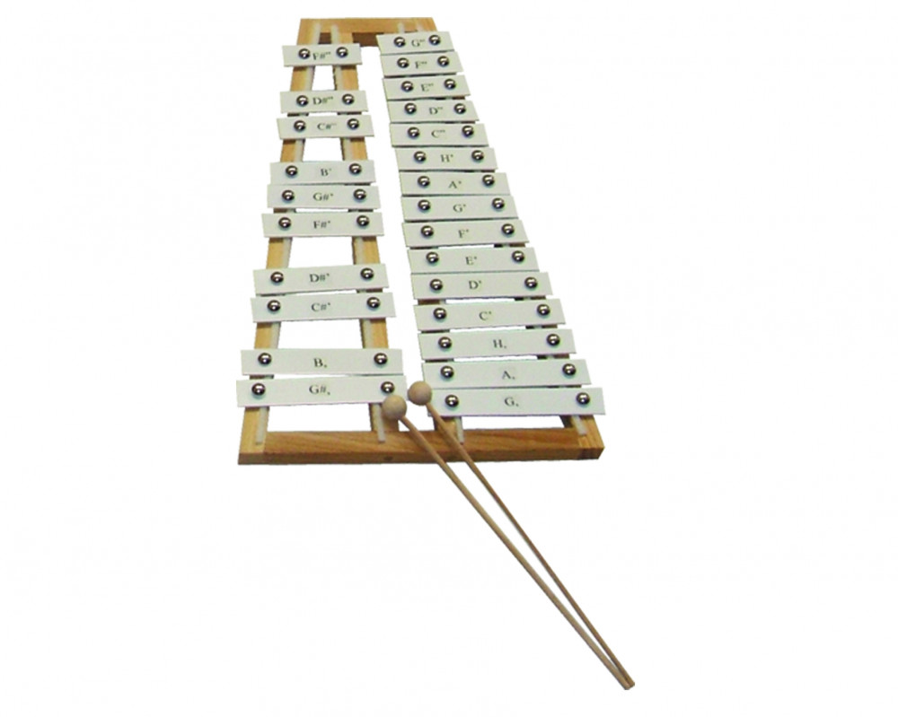 • 2 oktávos kromatikus metalofon (G-G" félhangokkal)-otthoni használatra, gyakorlásra