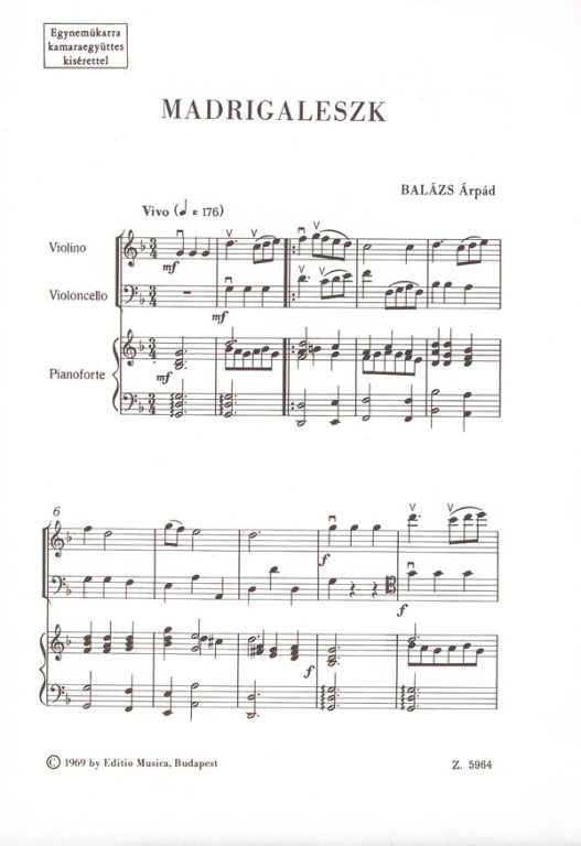 Balázs Árpád: Madrigaleszk-egyneműkarra kamaraegyüttes kísérettel