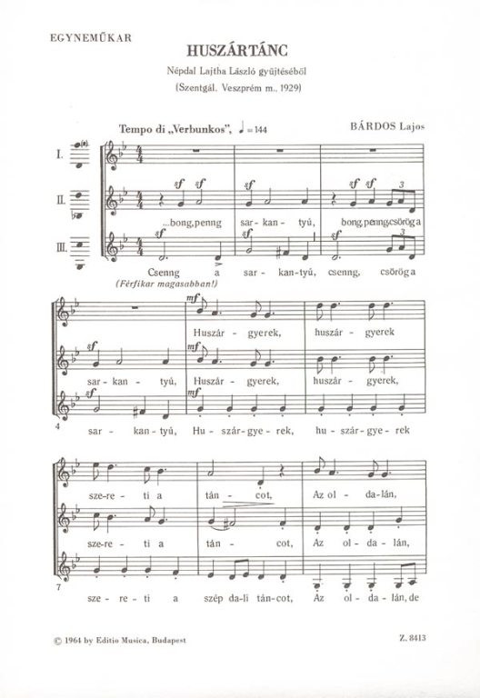 Bárdos Lajos:  Huszártánc - egyneműkar