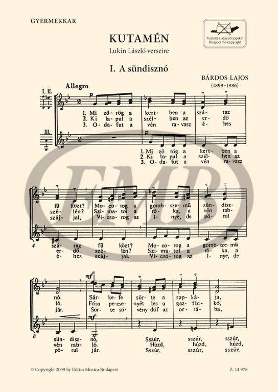 Bárdos Lajos: KUTAMÉN - három gyermekkar Lukin László verseire