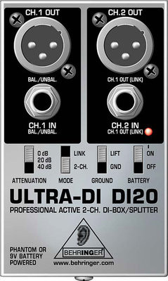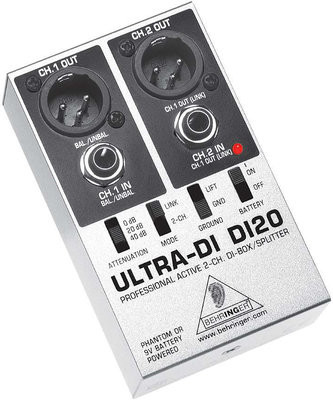 • ULTRA-DI, 2 sávos DI box / splitter, 2 független Di-Box 1/4” jack bemenettel és XLR kimenettel, Split mód, ultra lineáris frekvencia menet, a belső elem automatikusan kikapcsol amint fantom tápegységgel használjuk, közvetlen hangfal kimenetre is csatlakoztatható 3000 Watt-ig, akár +50 dB jel csillapítás, föld leválasztó kapcsoló, strapabíró fémdobozos kivitel