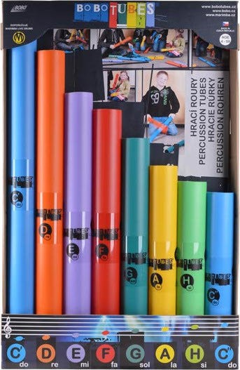 • Ütőhangszer: antiallergén műanyagból készült különböző vastagságú és hosszúságú hangcső, 8 darabos készlet a C dúr skála hangjaira hangolva (C - D - E - F - G - A - H - C), minden hang más színnel van jelölve, szórakoztató hallás, koordináció és ritmusérzék fejlesztő eszköz gyermekeknek és felnőtteknek egyaránt, szabadalmaztatott cseh gyártmány