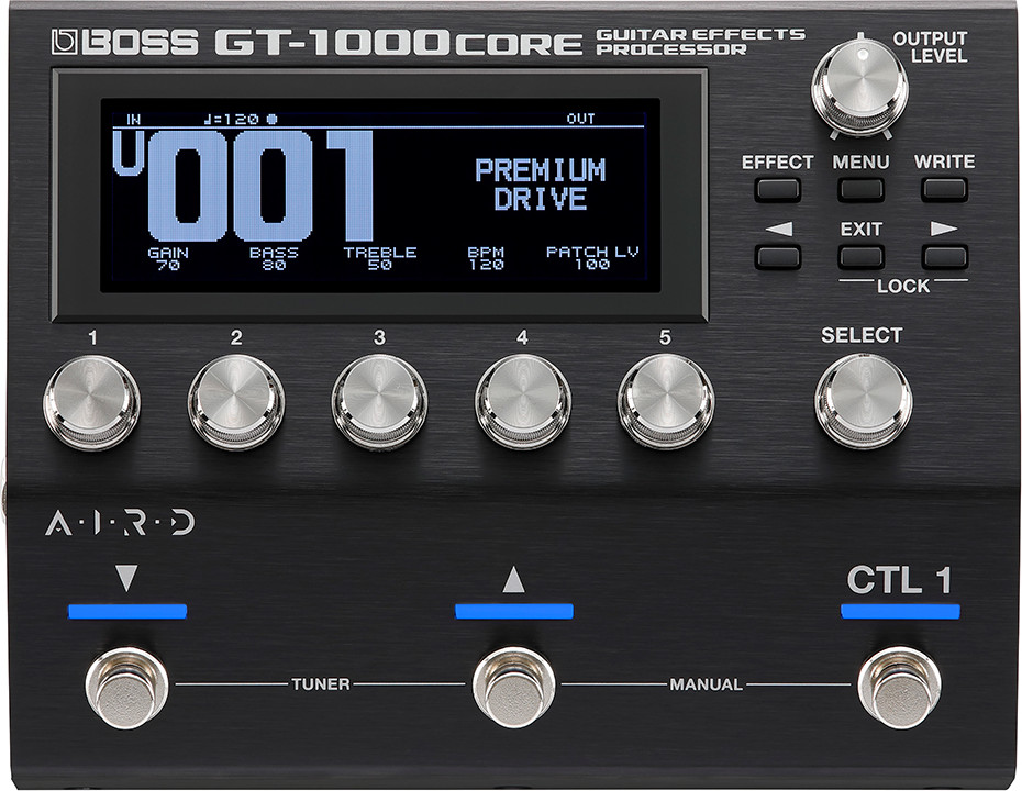 A kreatív látásmód lényegeA lenyűgöző és hihetetlenül sokoldalú GT-1000CORE, minden idők legteljesebb gitár-és basszusgitár-processzálását nyújtja egy önálló padlóeffekt formájában. Ebben a mini erőműben a csúcsmodell GT-1000 komplett DSP-je megtalálható, egyedülálló hangminőséggel, fejlett AIRD technológiával, 24 egyszerre használható effektblokkal és több mint 140 egyedi erősítő- és effekttípussal a kreatív lehetőségek kimeríthetetlen kibontakoztatásához. GT-1000CORE bármilyen pedalboard-ban elhelyezhető, de tökéletesen működik önálló processzorként is a koncerteken vagy stúdióban egyaránt. A rugalmasan használható kimeneteknek/bemeneteknek, valamint vezérlési lehetőségeknek köszönhetően, bármilyen összeállításban központi szerephez juthat.Általános tulajdonságokA csúcsmodell GT-1000 komplett belső hangprocesszálása egy kompakt, hordozható padlóeffektben.Hangszínek kimeríthetetlen tárháza a 24 egyszerre használható effektblokkal - beleértve két különböző erősítőt - és számos soros/párhuzamos címzési opciót.Kategóriájában vezető hangzás, 32-bites AD/DA átalakítás, 32-bites lebegőpontos processzálás és 96 kHz-es mintavételezési frekvenciaAIRD (Augmented Impulse Response Dynamics) technológia, amely természetes játékérzetet biztosít minden külső készülékkelKlasszikus BOSS effektek, vintage kispedálok, MDP effektek és a DD-500, MD-500 és RV-500 pedálokból közvetlenül átvett algoritmusokRendkívül gyors patch-váltás és Delay Carryover funkcióInnovatív Stompbox funkció, amely megkönnyíti a gyakori effektbeállítások használatát, a sok különböző patch esetébenBeépített Looper a gyakorláshoz, zenei ötletek kibontakoztatásához és az élő előadások gazdagításáhozNagy felbontású hangoló, monofonikus és polifonikus kijelzésselKét send/return loop külső effektek számára, négykábeles módszerrel vagy külön direkt kimeneteken keresztül16 belső tárhely, felhasználói IR-ek számáraVezérlés külső lábkapcsolókkal, Expression pedálokkal, valamint TRS MIDI-n és USB-n keresztülControl Out funkció az erősítőcsatornák váltásáhozUSB audió/MIDI interfész a számítógépes felvételkészítéshez és szerkesztéshezKülön üzemmód basszusgitár számáraA kispedálok óriásaA rendkívül könnyen hordozható GT-1000CORE, komplett effektezési megoldást kínál az utazó zenészek számára és más pedálok hozzáadása nélkül is megállja a helyét bármilyen professzionális környezetben. Egyetlen patch-ben 24 egyszerre használható effekt áll rendelkezésre, beleértve két erősítőt is. A 250 felhasználói patch elegendő helyet jelent a saját hangszínek tárolására mindenfajta fellépéshez. A DSP hangorrás teljesítménye elegendő az összes elérhető effekt számára, így a jelfeldolgozáshoz mindig elegendő kapacitás áll rendelkezésre a hangszínek létrehozása közben.