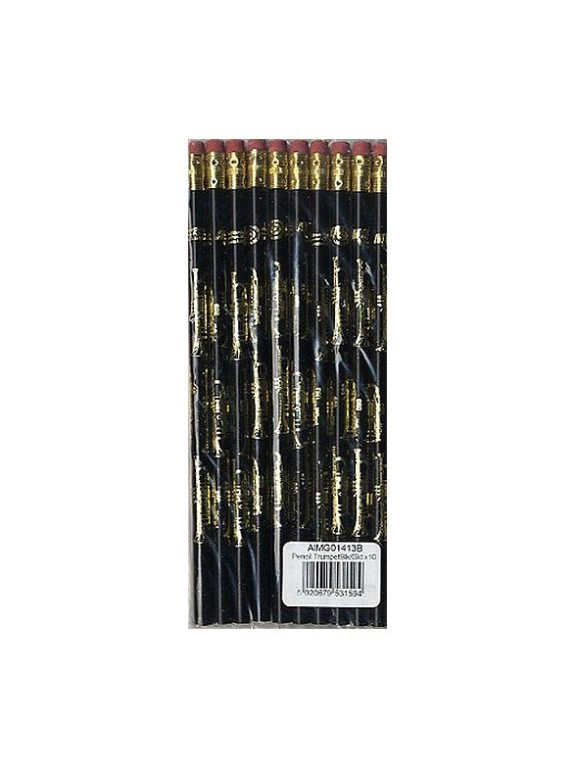 Ceruza - trombitás, fekete és arany, radírral