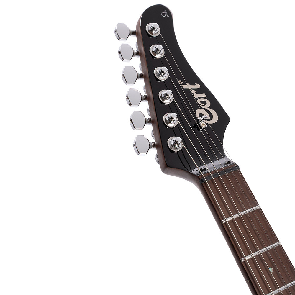 • A G300 Pro az ikonikus G-sze'ria legu'jabb, legmagasabb mino?se'get ke'pviselo? modellje. Benne van minden, amit a Cort nyu'jtani tud a kiva'lo' ja'tszhato'sa'g, a hangza'sbeli sokoldalu'sa'g e's az eszte'tikus diza'jn tere'n. Ezekben segi't az amerikai ha'rsfa test 6 mm-es juhar teto?vel, az e'getett juhar nyak, a fluoreszka'lo' Luminlay pozi'cio'jelo¨lo?k, a rozsdamentes ace'l bundok, valamint a ke't Seymour Duncan® humbucker, melyeket egy o¨ta'lla'su' pickup kapcsolo' szaba'lyoz. Emellett, a G-sze'ria'ban elso?ke'nt, a G300 Pro 24 bunddal rendelkezik, i'gy kiva'lo' va'laszta's azon gita'rosok sza'ma'ra, akik a magasabb fekve'sekben is szeretnek szo'lo'zni.