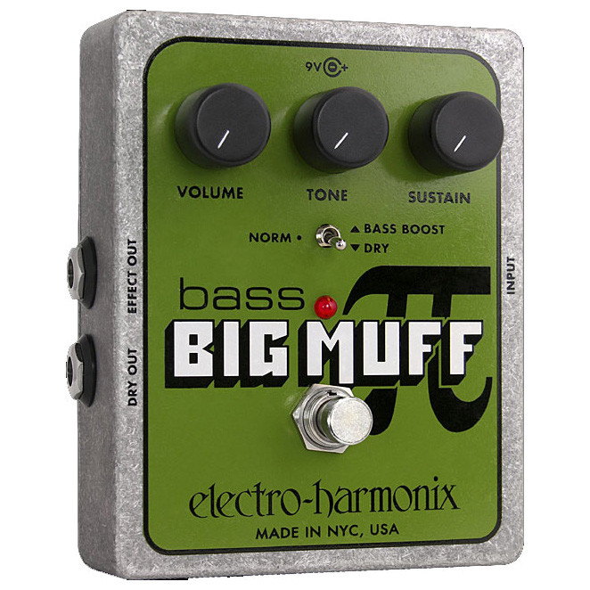 • A dry switch that mixes your dry bass with the Bass Big Muff Pi's distortionA bass boost EQ switch that reintroduces your low frequencies when tone is set for high frequenciesBased on the Russian Big MuffTough and compact die-cast chassis9-volt battery includedOptional 96DC-200BI power supply available