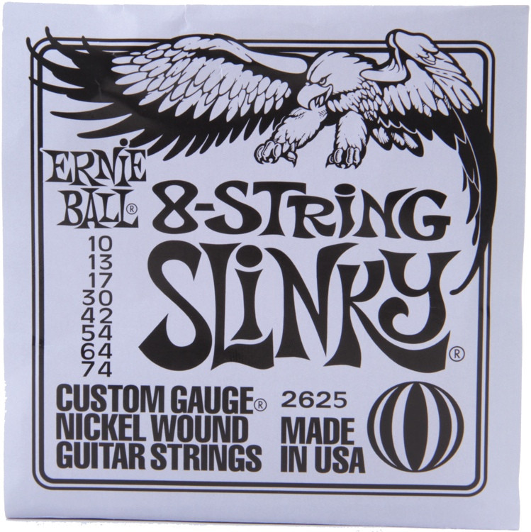 • Az Ernie Ball 8 String Slinky húrok széleskörben nagyrabecsült húrok a világszínvonalú hangjuknak köszönhetően. Ezek a húrok a precíz gyártásnak köszönhetően tökéletes összetételűek, optimális játékérzetet biztosítanak és hosszú élettartamúak. A 8 String Slinky sodrott húrjai nickel bevonatú acélhúrok melyek egy hatszögletű acél vezetőszál köré vannak tekerve. A sima húrok vékony bevonatú karbon acélból készülnek, ezzel nyújtva a tökéletesen kiegyensúlyozott hangot a gitárodnak.