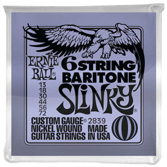 • Az Ernie Ball Bariton Slinky húrok körbetekercseltek a maximális tisztaság és komoly attak érdekében. Ez a szett optimális az A-A illetve B-B hangolásokhoz és tökéletesek a bariton gitárokra. Emellett manapság népszerűvé váltak nagyon mélyre hangolt gitárokon is. Ellentétben a basszusgitár húrokkal it a "bogyók" a húrok végén akkorák mint az elektromos gitárhúrokon. Az endorserek listája akik az Ernie Ball Slinkyt használják méltán tükrözik, hogy ki is a topseller. A húrok átmérője .013 .018p .030 .044 .056 .072