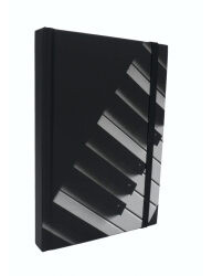 Fekete színű, zongorabillentyű mintás notesz