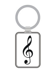 Fém, fehér-fekete, violinkulcs formájú kulcstartó