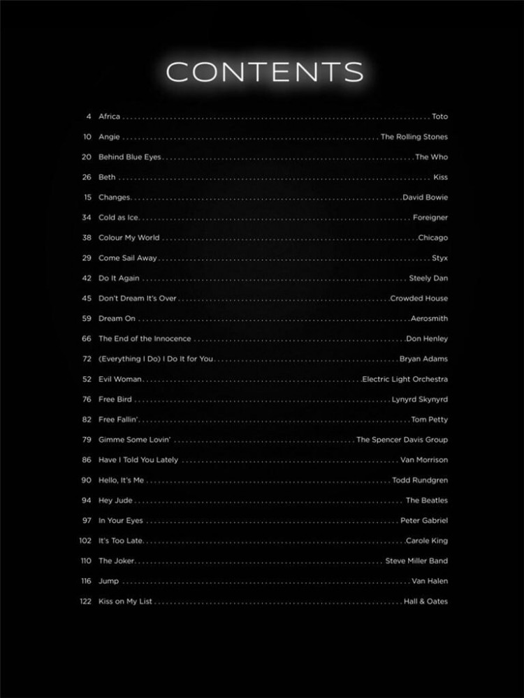 • 41. She's Always A Woman42. Sister Christian43. Still The Same44. Sweet Home Alabama45. We are the champions46. What A Fool Believes47. A Whiter Shade of Pale48. Don't Dream It's Over49. The Weight50. Beth