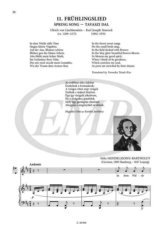 • 11.Mendelssohn-Bartholdy, Felix – Liechtenstein, Ulrich von, Simrock, Karl Joseph: Tavaszi dal (Sechs Gesänge, Op. 19a No. 1)