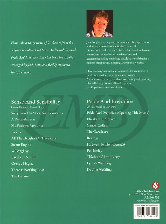 • Jane Austen regényeiből több sikeres BBC sorozat és film készült. Az Értelem és érzelem - zeneszerző Patric Doyle - valamint a Büszkeség és balítélet - zeneszerző Carl Davis - ezek közül a leghíresebbek. A bennük elhangzó eredeti filmzenék zongora változatát tartalmazza ez a kötet