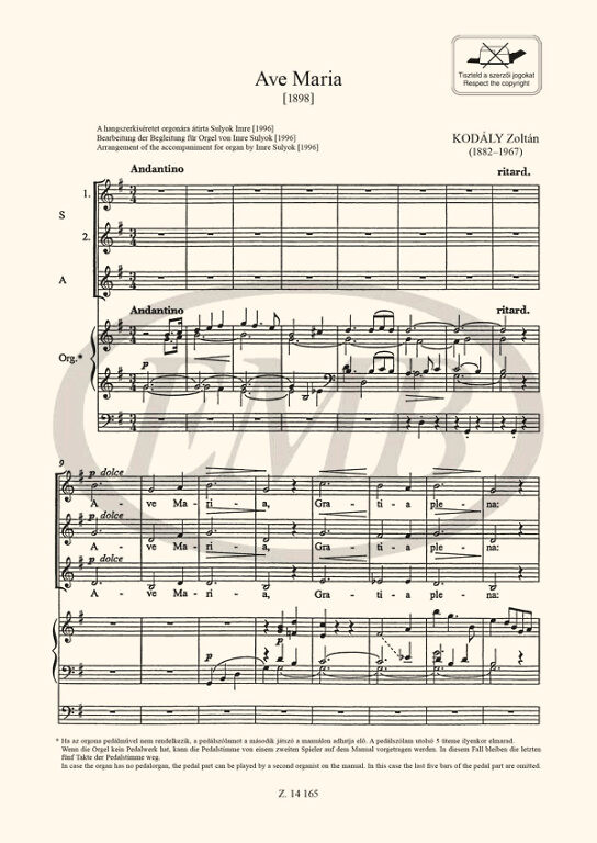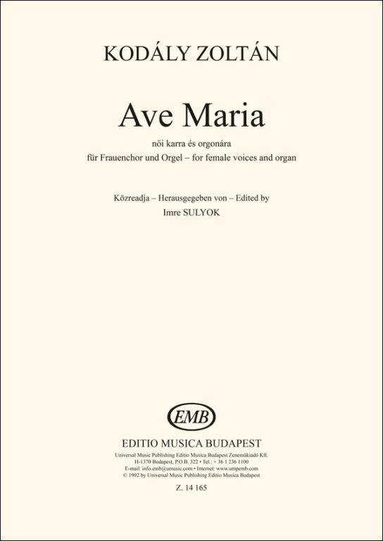 Kodály Zolltán: Ave Maria-női karra és orgonára