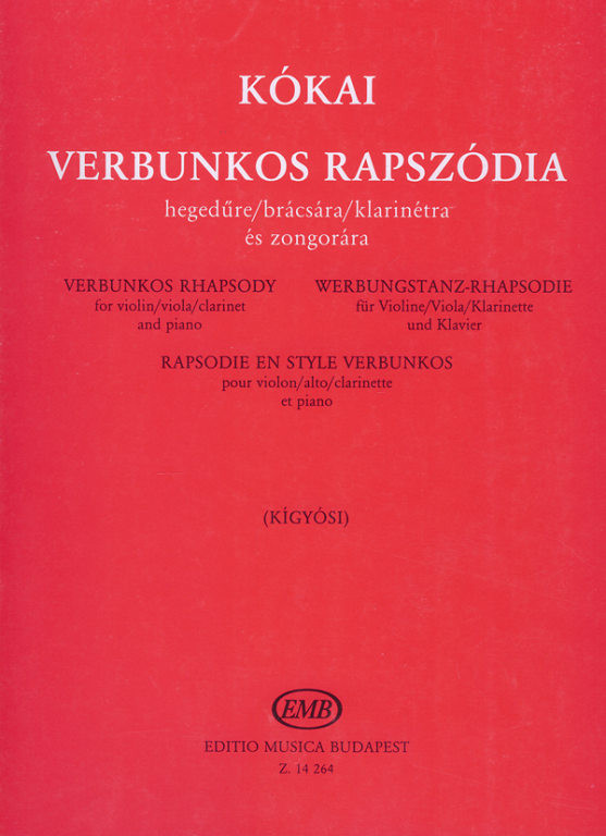 Kókai Rezső,Kígyósi Árpád: Verbunkos rapszódia-hegedű,brácsa,klarinét,zongora