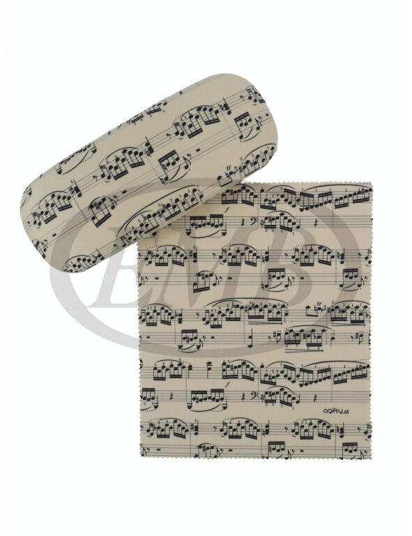 Krém színű kottamintás szemüvegtok, mikroszálas tisztító kendővel