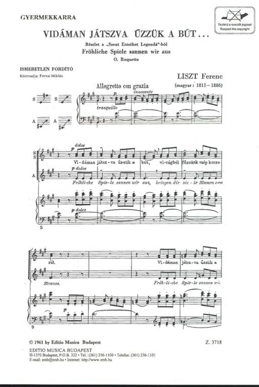 Liszt Ferenc: Vidáman játszva űzzük a bút (gyermekkarra)