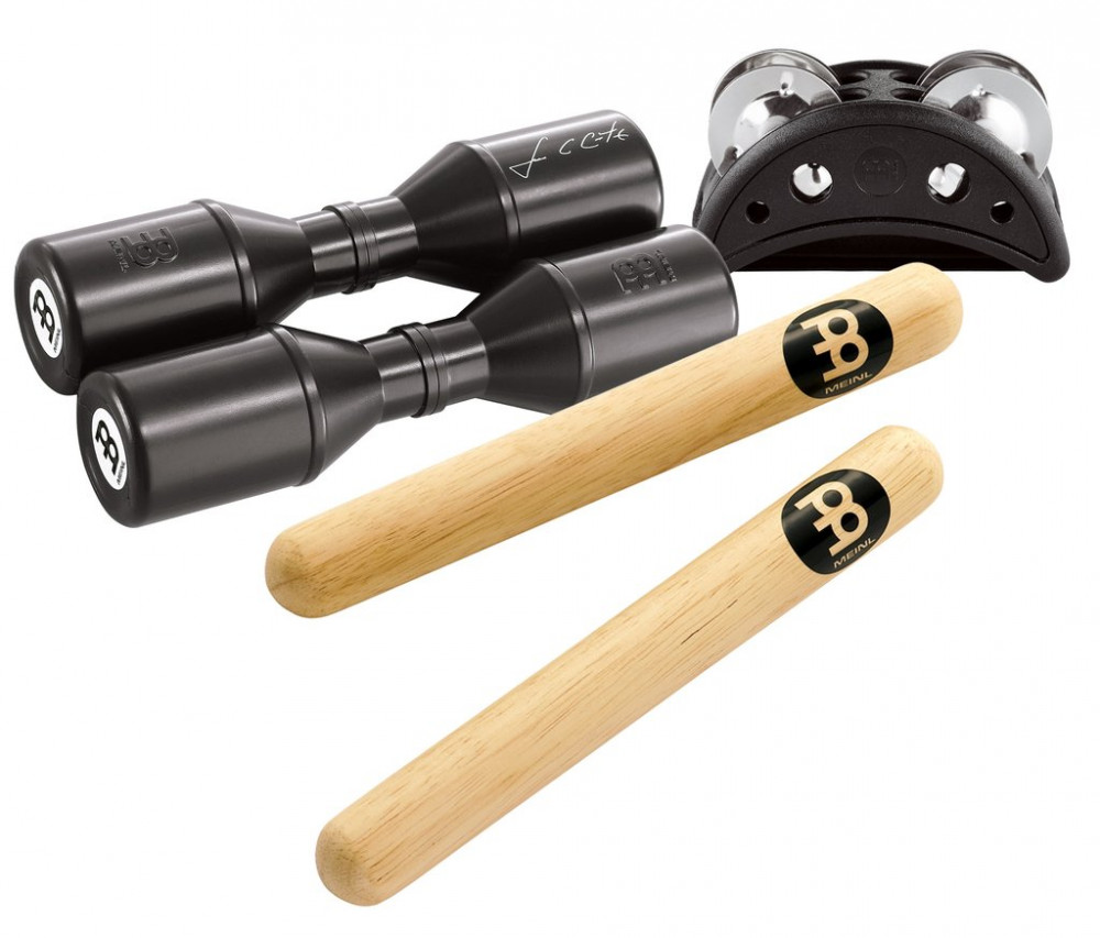 • ütőhangszer szett: a szett tartalmaz egy lábra rögzíthető csörgőt (kompakt kialakítás), egy Luis Conte live shakert (lágy hangzás), valamint egy pár klasszikus, fából készült tikfát (tradicionális ritmus)