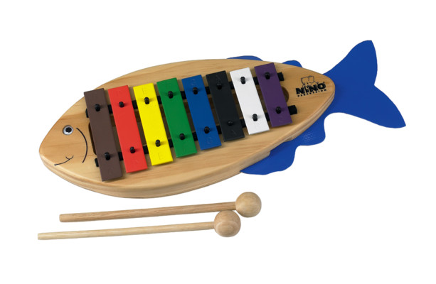• Gyerekeknek kifejlesztett színes hal alakú xilofon. A hozzá tartozó fa ütőkkel szólaltatható meg.