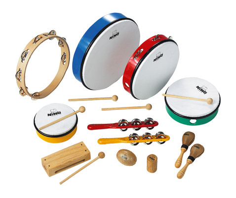 • Ritmushangszer szett 12 db-os : 1x ABS kézi dob 12", 1x ABS tamburin 10", 1x ABS kézi dob 8", 1x ABS kézi dob 6", 1x bőr maracas pár ( medium), 1x fa dob (large), 1x bőr tojás shaker, 1x csengő pálca sárga, 1x csengő pálca piros, 1x fa tamburin 10", 1x fa shaker (small)
