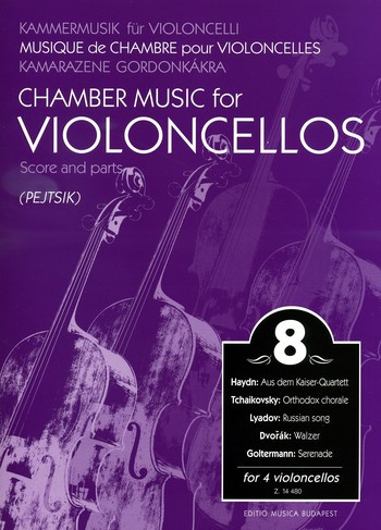 • A Kamarazene gordonkákra négyszólamú darabokat tartalmazó 8. kötete Haydn Kaiser-kvartettjéből a lassú tétel témája (az osztrák császárhimnusz dallama) és a téma két variációja indítja. Csajkovszkij Ortodox korálja, Ljadov eredetileg is négy gordonkán megszólaló Orosz népdala és Dvořák Walzere képviseli a szláv zenét. Az utóbbi technikailag is igényes feladat. A befejező darab a 19. századi gordonkaművész és komponista, Georg Goltermann Szerenádja.