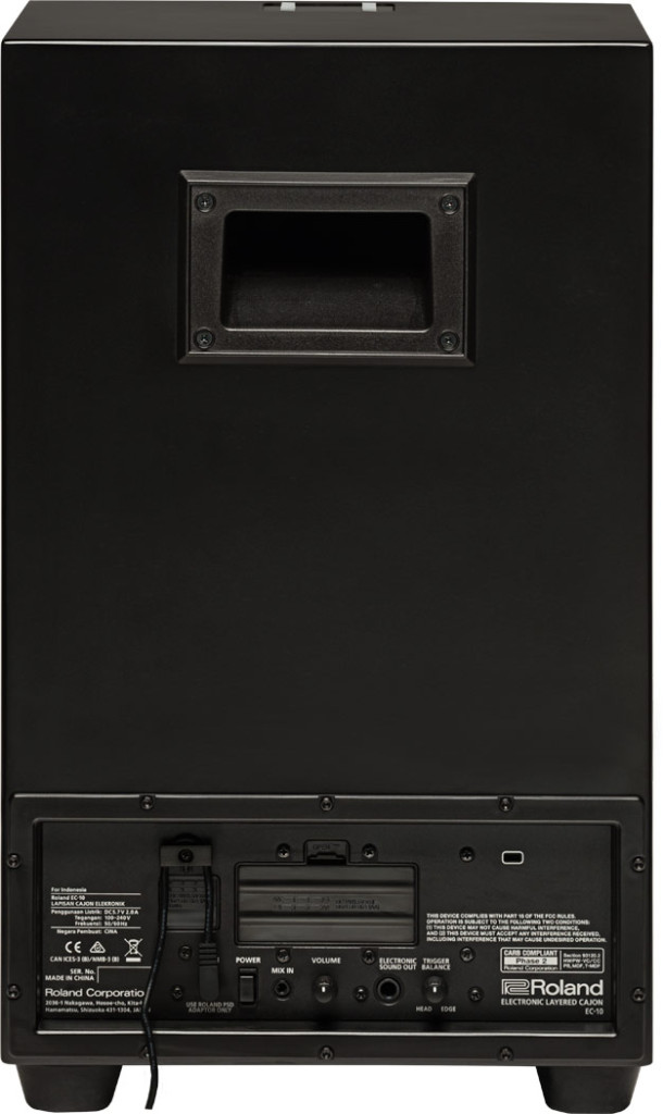 • A különleges és sokoldalú EC-10 EL Cajon akusztikus hangjához elektronikus hangszíneket is hozzáadhatunk. Az EC-10 valójában egy hagyományos akusztikus Cajon, amely önmagában is kiválóan szól. Azonban a beépített Roland elektronikus ütőhangszer csúcstechnológiával kiegészítve, ez a hangszer képes más hangszínek - például tamburin, shaker, akusztikus pergő, elektronikus dobok, hangeffektek stb. - megszólaltatására is, összeolvasztva a hagyományos Cajon hangzással. Az EC-10 EL Cajon az elektronikus ütőhangszerek dinamikus világába kalauzol minden Cajon rajongót, saját erősítő rendszerrel rendelkezik, a tápellátása pedig elemekkel biztosítható.