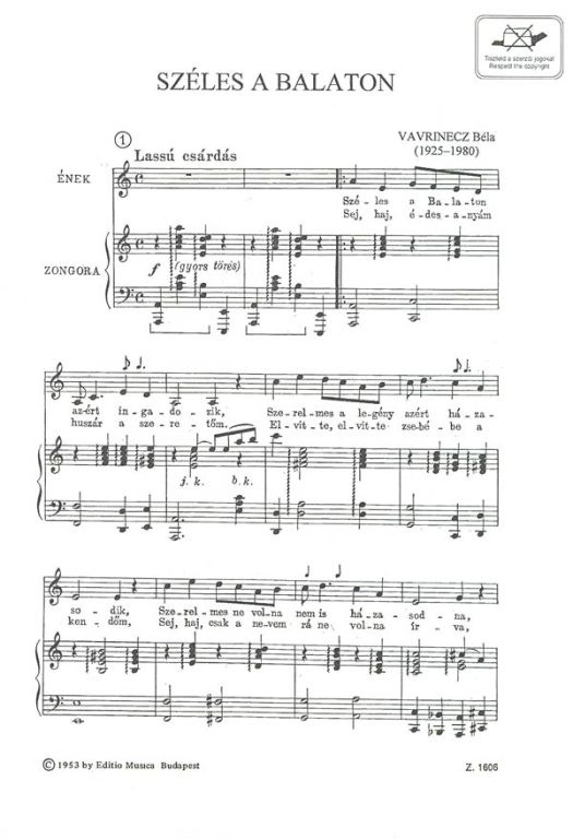 Vavrinecz Béla: Széles a Balaton - Lassú csárdás