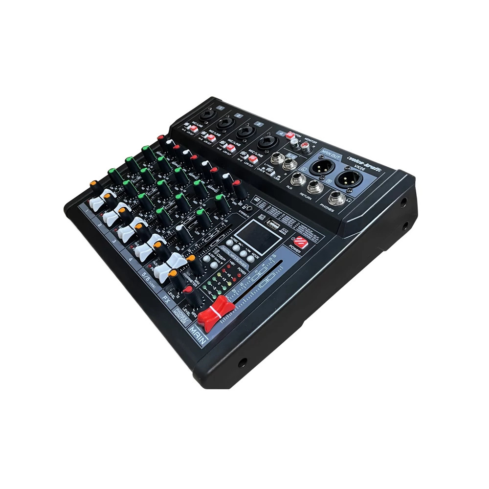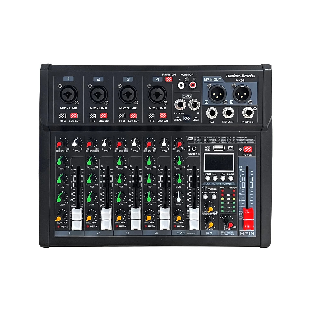 Voice Kraft Keverőpult 4 mono/1 sztereo csatorna, USB Audio interface, Bluetooth, 16 DSP effect