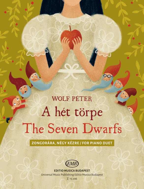• Ha valaki, akkor Wolf Péter igazán tudja, hogyan lehet a gyerekeket megszólítani és elvarázsolni a hangokon keresztül. A szerző hét közkedvelt mesefigurát jelenít meg a zene nyelvén: a hét törpe hét különböző karakterét eleveníti meg sajátos, jazzes harmóniákkal, ritmikával és humorral. A Primo szólamot könnyedén eljátszhatják már 3., 4. osztályos növendékek. A nehezebb Secondo szólamot a tanárnak szánta a szerző, de természetesen az ügyesebb, idősebb növendéknek is örömteli kihívást jelenthet.