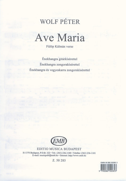 Wolf Péter:   Ave Maria-ének- gitárkísérettel,zongorakísérettel,vegyeskarra-zongorakísérettel