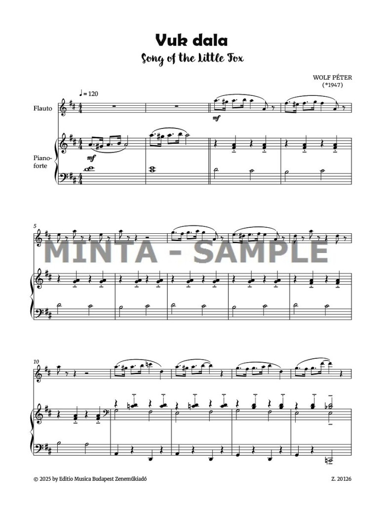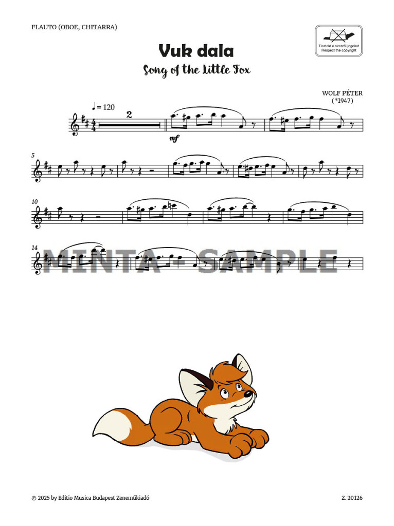 • Wolf Péter (*1947) versenyművektől tánczenéig sok műfajban jártas, színes palettájú zeneszerző, akit emlékezetes műveiért többszörösen díjaztak. Dargay Attila Vuk című rajzfilmjéhez írt zenéjét Magyarországon 1981 óta minden nemzedék ismeri és kedveli. A szeretetre méltó rókakölyök dalát a szerző átirataiban adjuk közre az ifjú muzsikusok örömére.