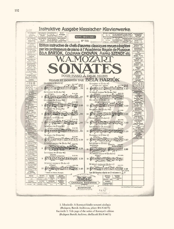 • Bartók 1907-től 1934-ig tanított zongorát a budapesti Zeneakadémián. Tanári működése első éveiben a budapesti Rozsnyai és Rózsavölgyi kiadók megbízásából a zongorairodalom számos klasszikusából készített előadási javaslatokkal, ujjrendekkel és magyarázatokkal ellátott, úgynevezett instruktív kiadást, összesen több mint kétezer kottaoldal terjedelemben. Bach és Beethoven után Mozart volt a harmadik klasszikus mester, akinek Bartók a magyarországi zeneoktatás és zenemű-kereskedelem érdekében szükséges instruktív kiadását el merte vállalni. A feladattal Rozsnyai Károly budapesti zeneműkiadó bízta meg, a szonáták revízióján 1910-1912 között dolgozott, 1912-ben vagy 1913-ban pedig meg is jelent a gyűjtemény egykötetes változata. Később, talán az I. világháború utáni infláció éveiben, rosszabb minőségű papíron, szürke borítóval jelent csak meg a kétkötetes forma. Bartók közreadásai a kor interpretációs elképzeléseit tükrözik, ugyanakkor többnyire részletezőbbek, aprólékosabban kidolgozottak, mint a századforduló más, hasonló instruktív kiadásai.